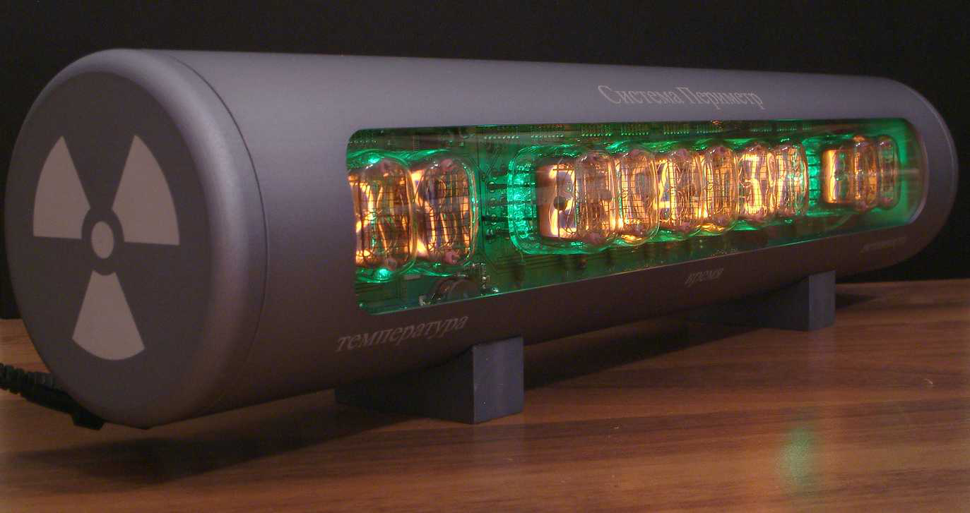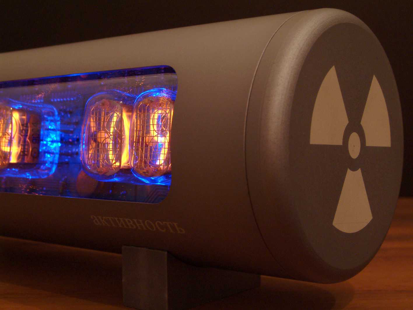 Aren’t they beautiful? We are of course talking about nixie tubes (in some parts of the world called “digitrons”) – neon gas cold cathode tubes. This one is a little rather fun project. We always wanted to do something with nixie tubes and what else could one do than the all time classic – a clock. Since a clock on its own is a bit boring, we decided to add something extra. There is a temperature sensor, RGB LED backlight and, most importantly, a Geiger tube for radiation detection. From here it was just one small step to give it a crazy name and labels in Cyrillic :-).