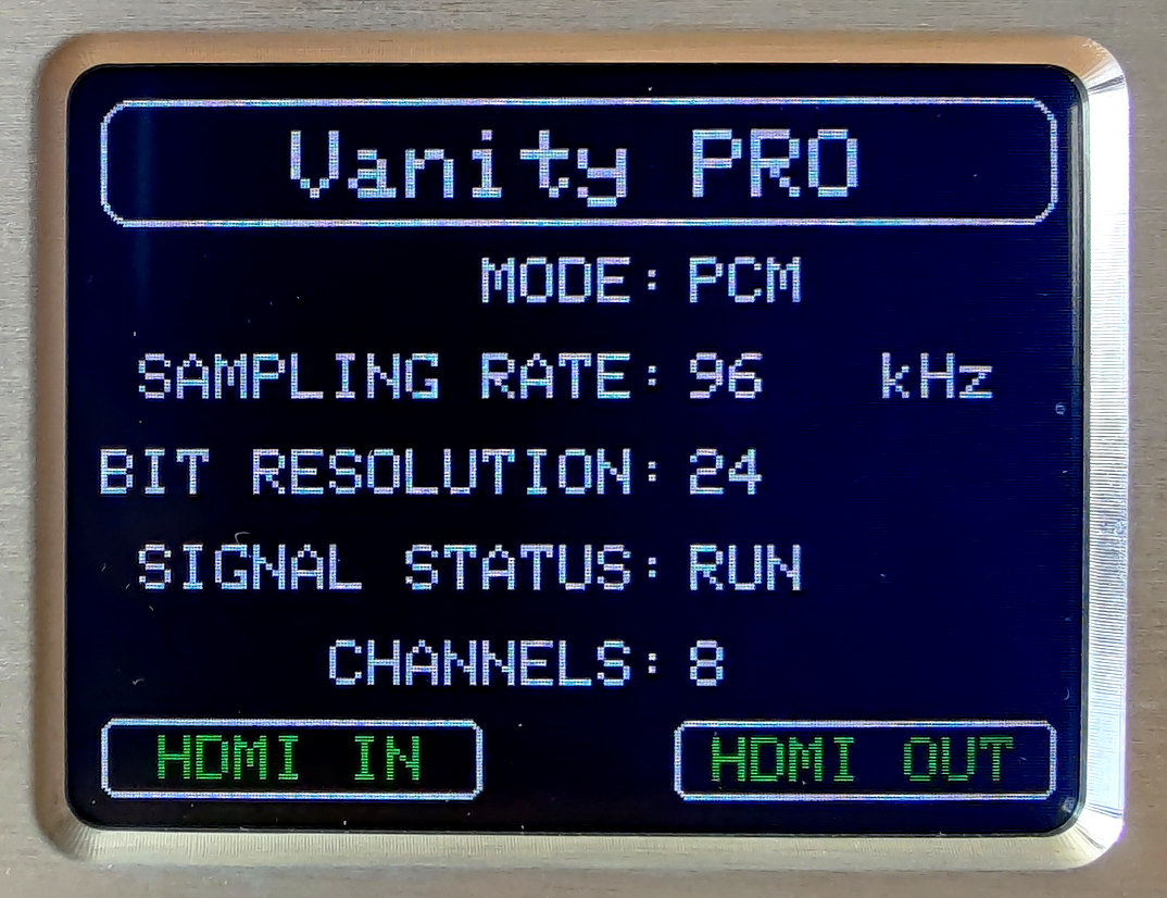 To deal with one of the major technical imperfections of the HDMI interface, the VanityPRO uses a pair of low-jitter digitally controlled oscillators and an adaptive control algorithm to lock onto the incoming audio frequency and output the audio data with perfect timing, completely free of any jitter or noise of the HDMI interface.