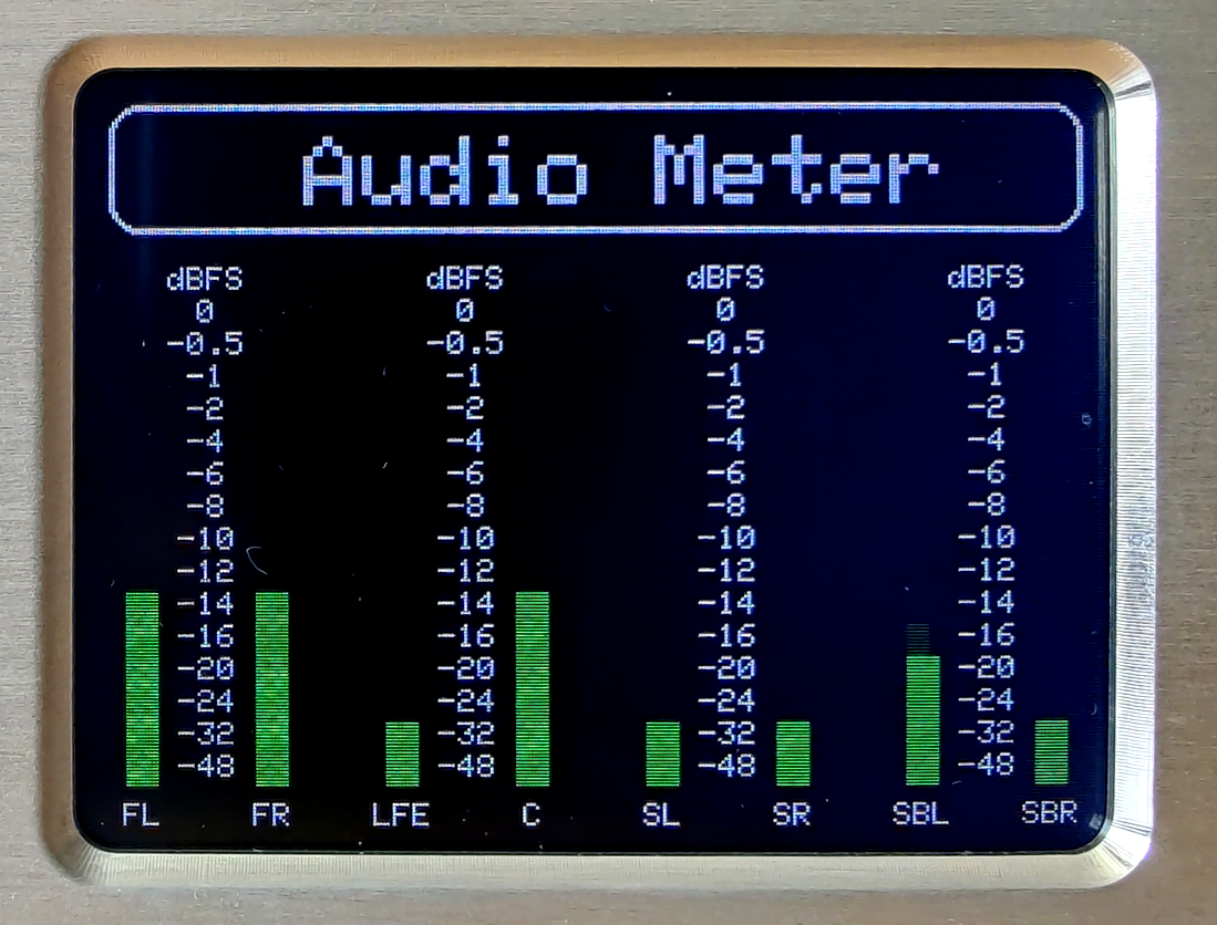 The user interaface is implemented using a large RGB screen with adjustable brightness and timeout function and a rotary encoder. All audio processing parameters and system configuration are available via easy to navigate menu. There is also a stand-by LED in the front panel with adjustable brightness.